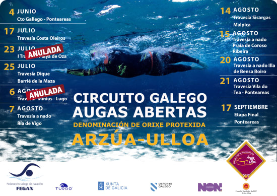 Circuito Galego Augas Abertas Denominación de Orixe Protexida Arzúa-Ulloa: El circuito consta de 11 etapas, un total de 40.500 metros, 38.800 para la categoría máster sin tramos neutralizados, todos los metros forman parte de la competición. Las pruebas estarán controladas por los jueces del Comité Galego de Árbitros.