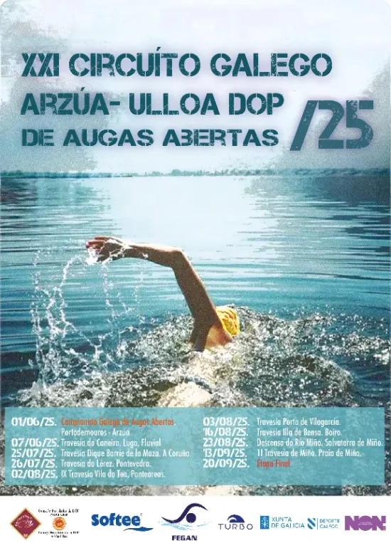 Circuito Galego Augas Abertas Denominación de Orixe Protexida Arzúa-Ulloa. El circuito constará de 7 etapas. Comenzará el 26 de mayo con el Campeonato Gallego de Aguas Abiertas y finalizará el 28 de septiembre con la etapa final.