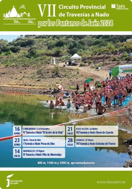 La Diputación Provincial de Jaén, teniendo como objetivos la promoción y el fomento de la práctica del deporte en el medio natural, convoca el “VII Circuito Provincial de Travesías a Nado por los Pantanos de Jaén 2024"