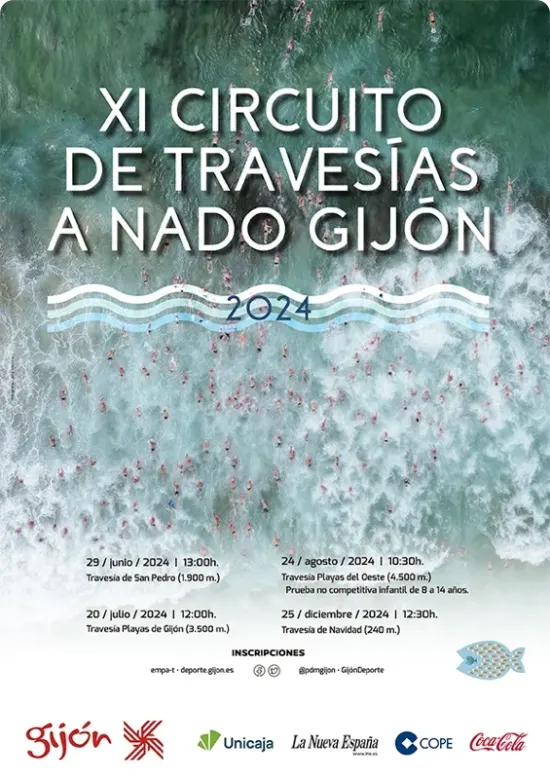 Ya está aquí el XI Circuito de Travesías a Nado de Gijón: Como cada año Gijón/Xixón Deporte fomenta a través de la natación en aguas abiertas la práctica deportiva al aire libre y el valor de nuestro litoral recorriendo la costa local con sus travesías.