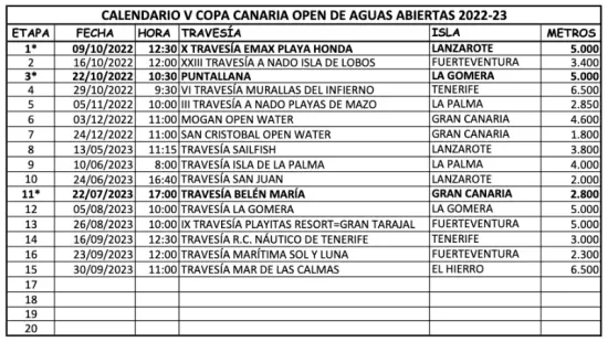 Hay 16 travesías en esta liga, entre el 09/10/2022 y el 30/09/2023, todas en Canarias. Puedes verlas más abajo.