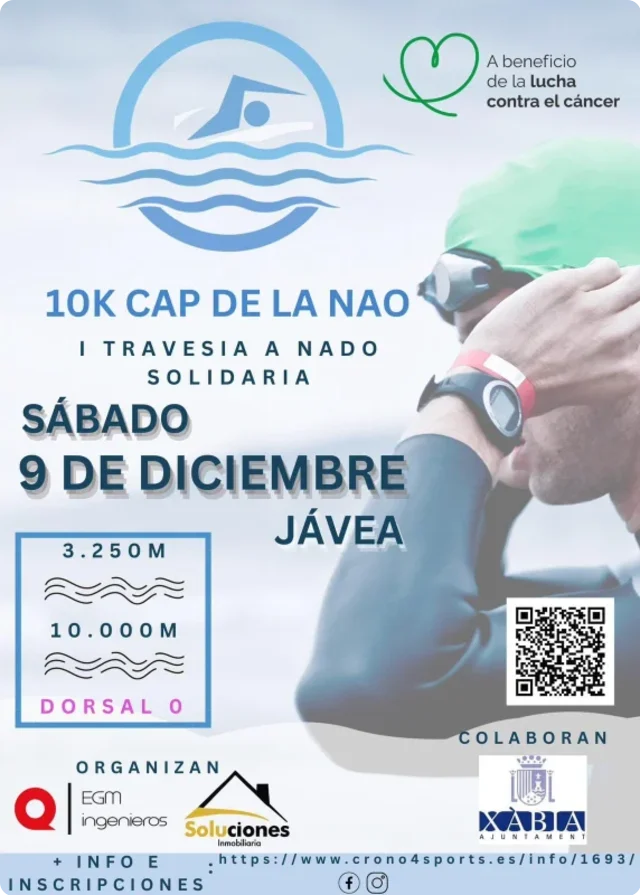 Travesía solidaria y a la vez competitiva. Será en el puerto de Jávea, en la playa de La Grava: La travesía oficial será nadar desde La Grava hasta la Cala Blanca y vuelta.