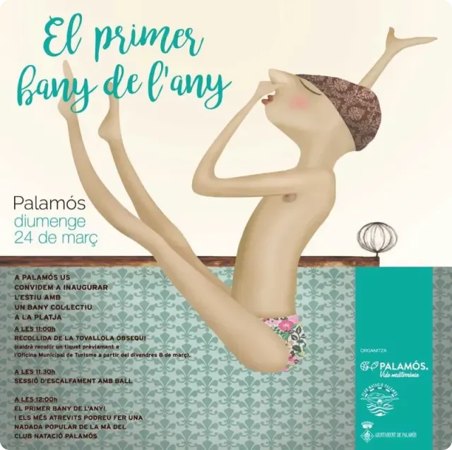 El domingo 24 de marzo nos volvemos a reunir en la Playa Grande de Palamós para hacer el primer chapuzón de 2024 e inaugurar juntos el verano.