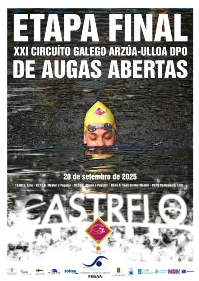 Evento final del Circuito Gallego de Aguas Abiertas con diferentes categorías y distancias. Incluye pruebas individuales y contrarreloj por equipos en el embalse de Castrelo de Miño.