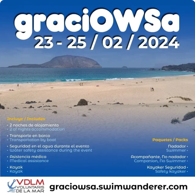 Disfrutar un fin de semana nadando en la Isla de La Graciosa: Consiste en 2 días de nado, tanto la mañana del sábado como la del domingo, y varias actividades sociales el sábado por la tarde: Evento de dos días de natación lúdica en la isla de La Graciosa, rutas de 5km y 2.5km