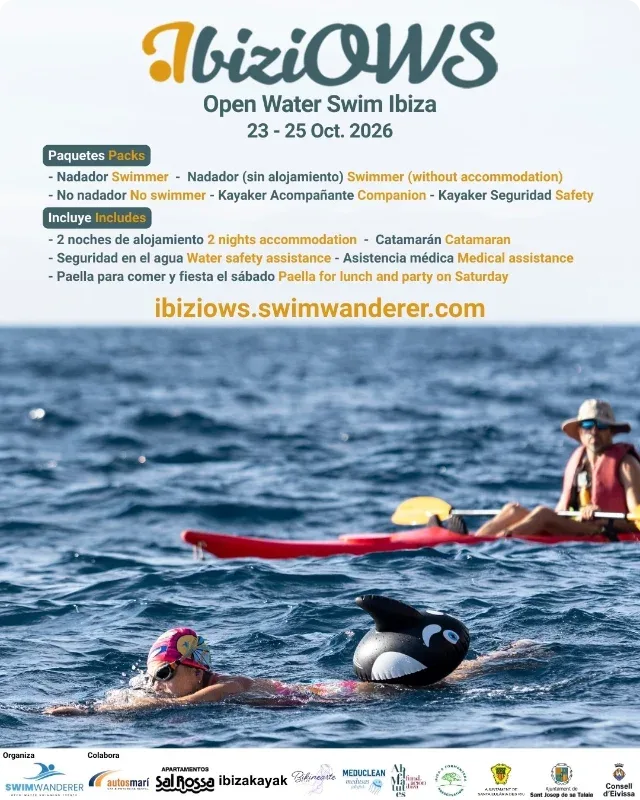 Evento de natación en aguas abiertas en Ibiza con múltiples rutas de nado. Permite elegir distancias y ofrece experiencias únicas en diferentes localizaciones costeras de la isla.