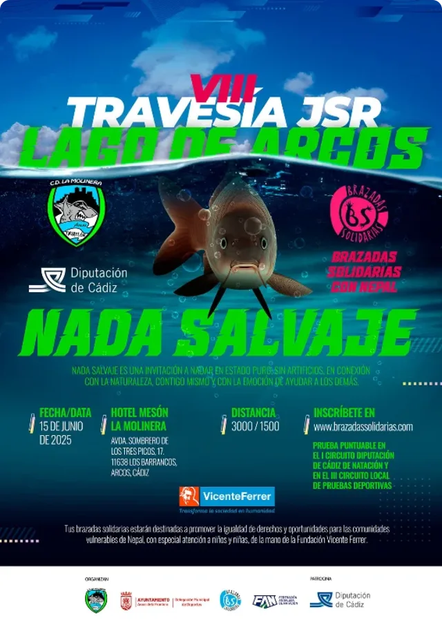 Organiza: CD La Molinera, Ayuntamiento de Arcos de la Frontera, Brazadas Solidarias, Federación Andaluza de Natación