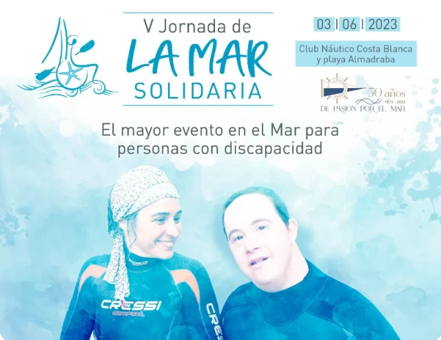 La Jornada de La Mar Solidaria es el mayor evento acuático dirigido a personas con discapacidad, que se celebra cada año en el Club Náutico Costa Blanca de Alicante: Este acontecimiento sin ánimo de lucro tiene como finalidad la práctica y el disfrute de diversas disciplinas deportivas relacionadas con el mar, su entorno terrestre y el medio acuático