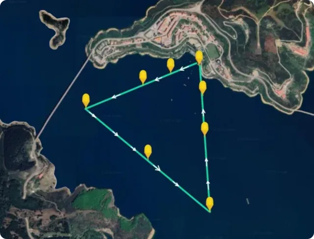 El recorrido de 7000 son dos vueltas a un circuito triangular según imagen.