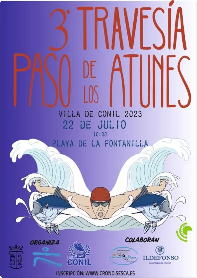 La Delegación de Deportes del Ayuntamiento de Conil de la Frontera organiza la 3ª Travesía a nado “Paso de los Atunes”, Villa de Conil, contando con la colaboración del Club Natación Conil y el Club Waterpolo Conil.