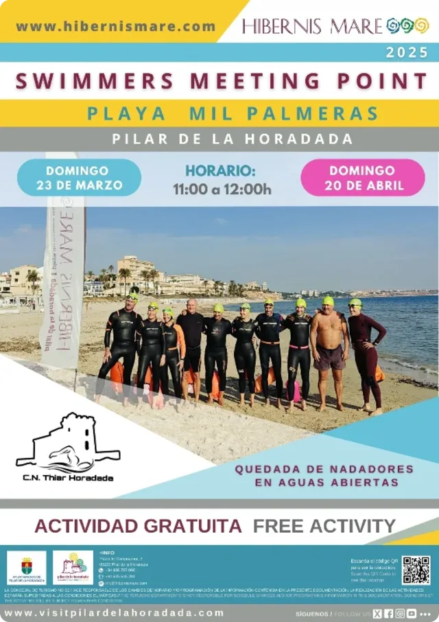 ¡Es hora de volver a sumergirse en las aguas abiertas, vuelve Swimmer Meeting Point! Volvemos al agua para realizar una travesía náutica y disfrutar de la compañía de otros apasionados nadadores en Hibernis Mare, nuestra playa de invierno en Mil Palmeras de Pilar de la Horadada, Alicante.