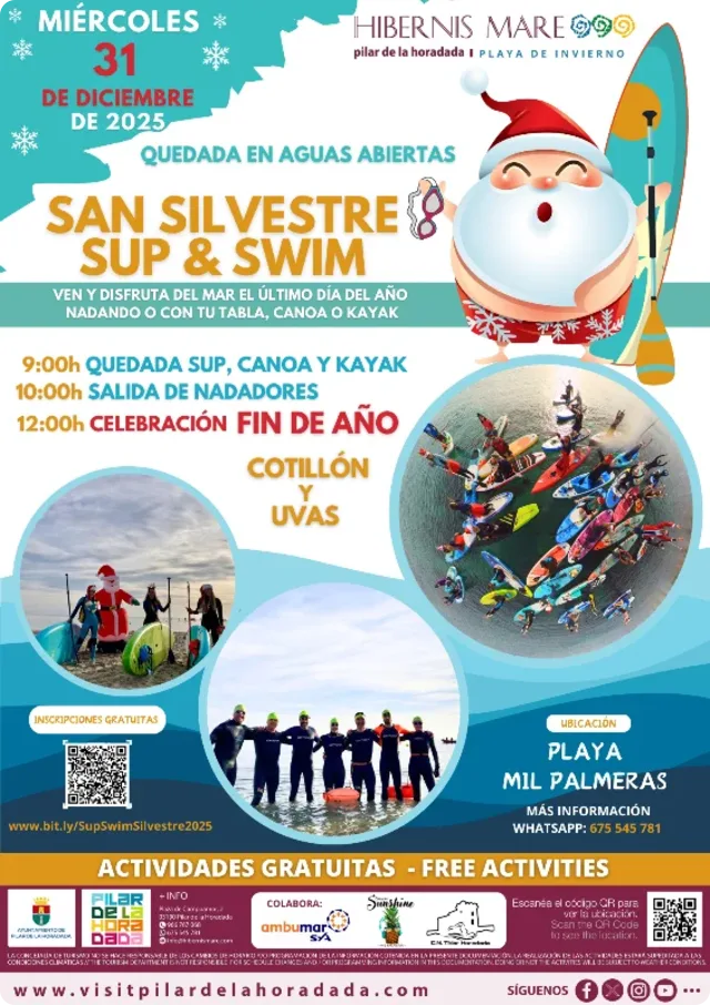 Sorpresa! El 31 de diciembre, despide el año en la playa de Mil Palmeras participando en la San Silvestre SUP & Swim. ¡Una forma única de dar la bienvenida a 2026 disfrutando del mar!