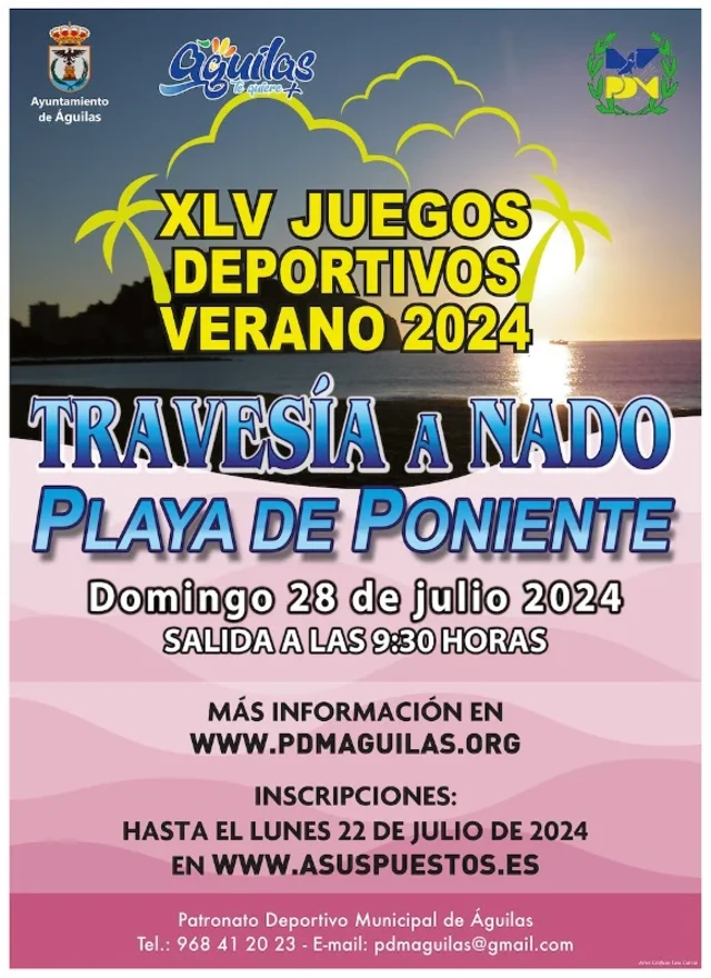 Organizada por el Patronato Deportivo Municipal de Águila, la meta estará ubicada junto al espigón “El Roncaor” en la Playa de la Colonia.