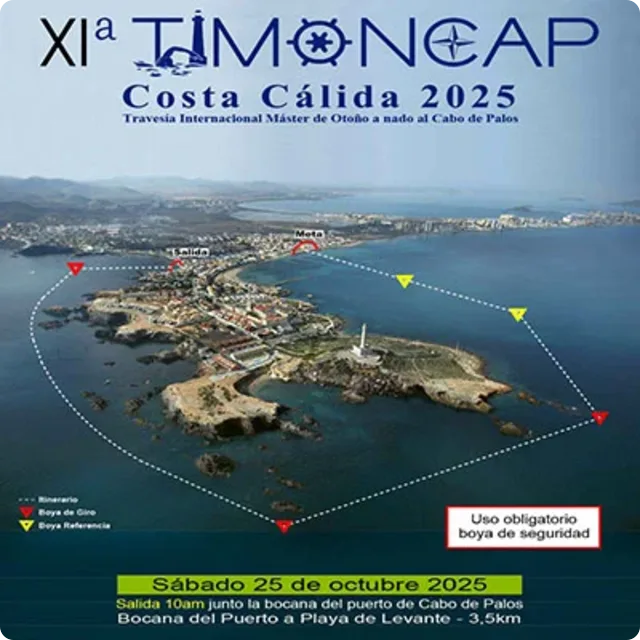 Travesía internacional de natación de 3,5 km en Cabo de Palos. Una prueba emblemática de aguas abiertas en la Región de Murcia, con salida desde el puerto y meta en la playa de Levante.