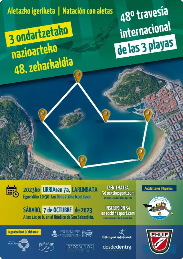 Prueba con aletas y tubo obligatorios que en dos vueltas recorre 3.700 metros en la Bahía de La Concha, San Sebastián