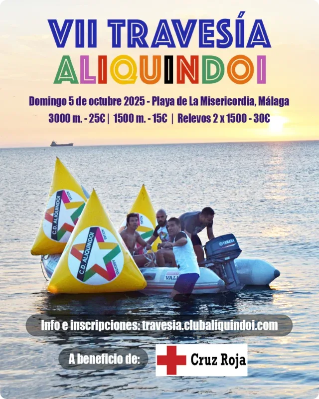 Desde 2017, nuestro club viene celebrando anualmente la Travesía Solidaria Aliquindoi, a favor de la Cruz Roja del Mar. ¡Anímate a participar en la próxima edición! Te garantizamos que pasarás un muy buen día de natación y hermandad entre los practicantes de este bello deporte.