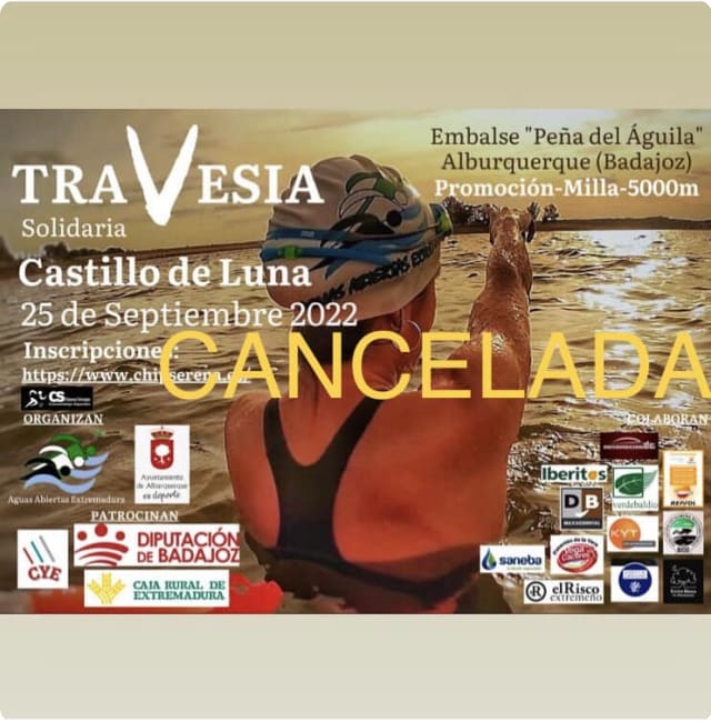 La V travesía Solidaria a nado “Castillo de Luna” consta de 3 pruebas, promoción, 1 milla y 5000 metros. La travesía se desarrollará en el embalse de Peña del Águila en la zona de la Reniega próxima a la localidad de Alburquerque