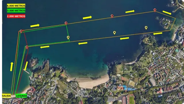 La prueba se realizará en aguas abiertas, por lo que los nadadores tomarán la salida todos juntos, acompañados por embarcaciones de organización y seguridad. Se dispondrá de un autobús desde el punto de encuentro o meta (Playa de Santa Cristina) hasta las playas de salida.
