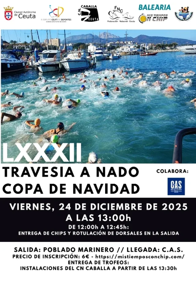 Edición 71 de la Travesía de Navidad organizada por el Club Natación Caballa, con la colaboración del Instituto Ceutí de Deportes, la Federación de Natación de Ceuta y la Asociación de Natación en Aguas Abiertas, que se celebrará el próximo 24 de diciembre