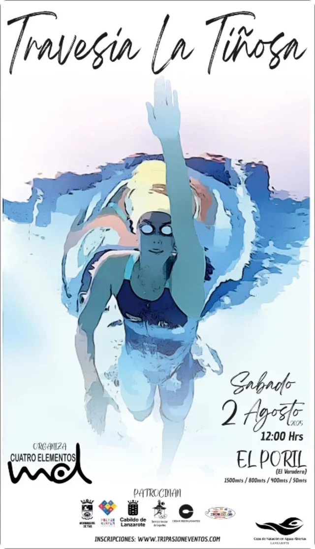 Travesía a nado en el muelle de El Poril con cuatro distancias diferentes. Un evento deportivo que combina deporte, tradición marinera y paisajes atlánticos de Lanzarote