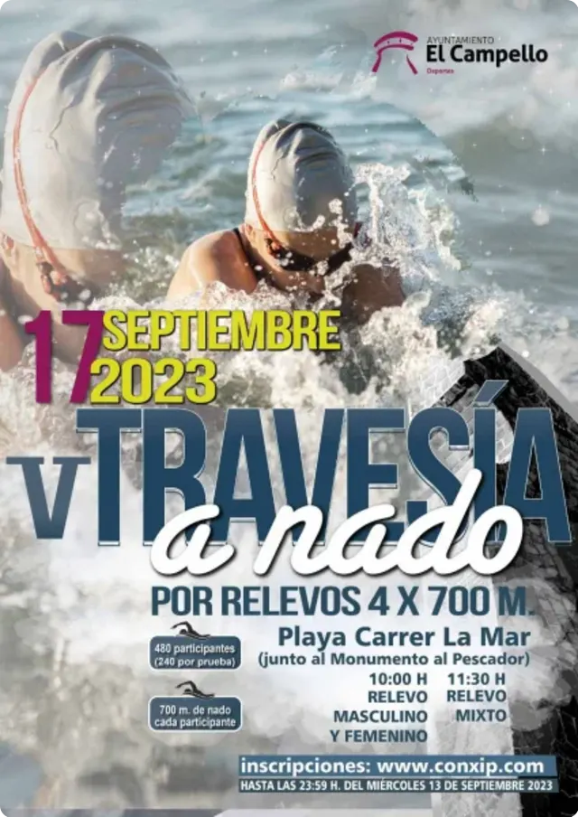 Travesía de carácter popular por relevos en equipos de 4 personas: Cada uno de los miembros del equipo tiene que realizar el circuito a nado, de forma individual y en el orden que acuerden previamente en la inscripción. No hay descanso y no se para el tiempo de carrera entre relevista y relevista.