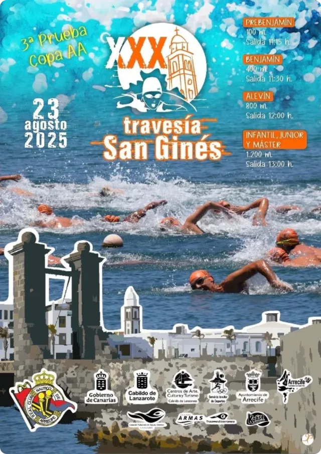 La XI Copa de Natación en Aguas Abiertas de Lanzarote, está convocada por el Cabildo de Lanzarote a través del Área de la Actividad Física y del Deporte que organizará y coordinará a las entidades responsables de cada travesía, correspondiente a la edición del 2025