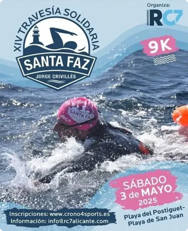 Esta travesía se realiza el domingo siguiente al día de Santa Faz y, como su nombre indica, queremos simular la peregrinación desde Alicante hasta la Capilla de Santa Faz, pero en vez de andando, nadando