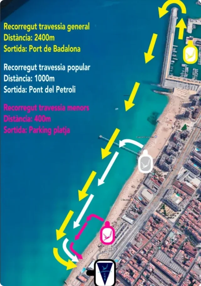 Incluida en el calendario oficial de aguas abiertas de la Federación Catalana de Natación para la temporada de este año, y que es puntuable para el Circuito Catalán de Travesías en Aguas Abiertas Una prueba que te permitirá nadar por lugares emblemáticos de Badalona como el Pont del Petroli hasta el Club Natació Badalona.