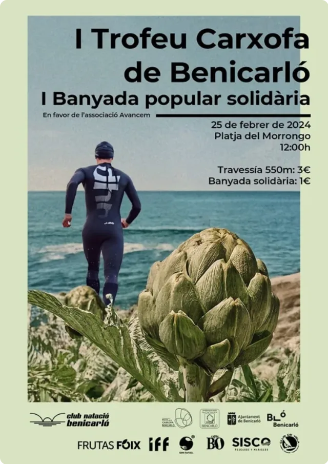 A nuestra Alcachofa sólo quedaba dedicarle una travesía y manos a la obra que nos hemos puesto. Así nace este evento, y con una buena causa en beneficio de Avancem BM. Contaremos con una prueba de natación de 550 metros dentro de la playa del Morrongo y una bañada popular abierta a todo el mundo y a la que os invitamos a participar