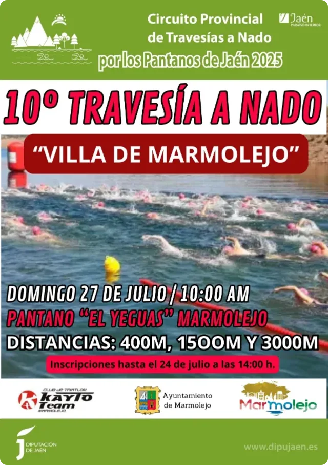 La Diputación Provincial de Jaén, teniendo como objetivos la promoción y el fomento de la práctica del deporte en el medio natural, convoca el “VIII Circuito Provincial de Travesías a Nado por los Pantanos de Jaén 2025"